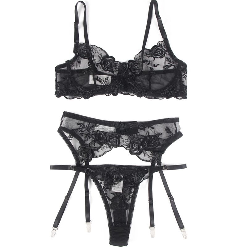 BRUMA SECRET – ELISABETH SET TRES PIEZAS DE ENCAJE ESTAMPADO FLORAL NEGRO XL/XXL